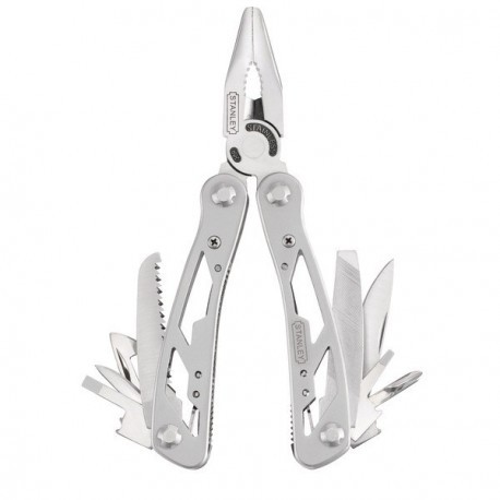 12 outils en 1: pince universelle, pince coupe cables, scie, couteaux, décapsuleur, pince à becs coudés, tournevis plats, tournevis Phillips®, lime. Poignées ergonomiques. Livré avec pochette et agrafe-ceinture. Taille ouverte/fermée : 165 /105 mm.